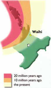 Over time the volcanic activity in this area dwindled. As the earth’s crust moved, the volcanic ‘hot spot’ was felt through Tauranga, then Te Puke, to be centred around the Central Plateau today.