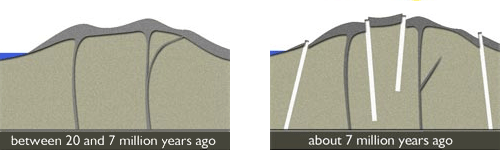 It is thought that about seven million years ago the Waihi area was violently shaken by many earthquakes. Large deep cracks or fissures appeared in the older volcanic rocks.