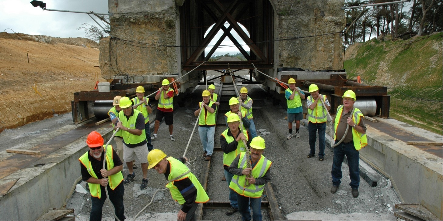 - 2 October 2006. Keen as always to assist wherever possible, the Waihi Lions Club lent a hand on a Sunday when the regular crew are not at work. The club is on the lookout for new members and used the photo opportunity provided by the pumphouse move to get this attention grabbing image. Only about 160 metres to go!